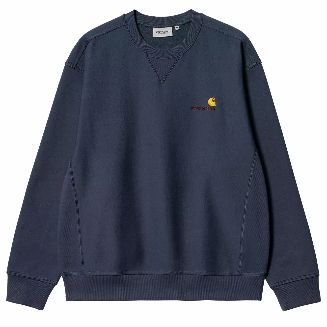 A relaxed design with a loose fit, perfect for your chilled weekends off. The Carhartt American Script Sweat is constructed from a heavyweight Cotton Jersey. Complete with a two-tone American Script logo embroidered to the chest.