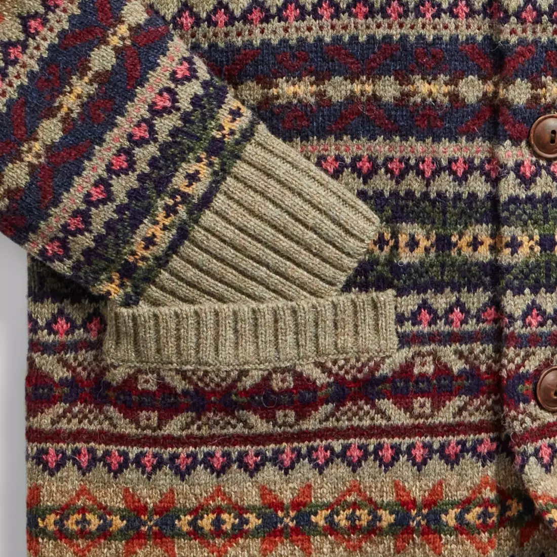 The RRL by Ralph Lauren Shawl Cardigan is a truly unique, one-of-a-kind piece with a vintage-inspired pattern. Expertly crafted from a blend of ring-spun wool and cashmere.