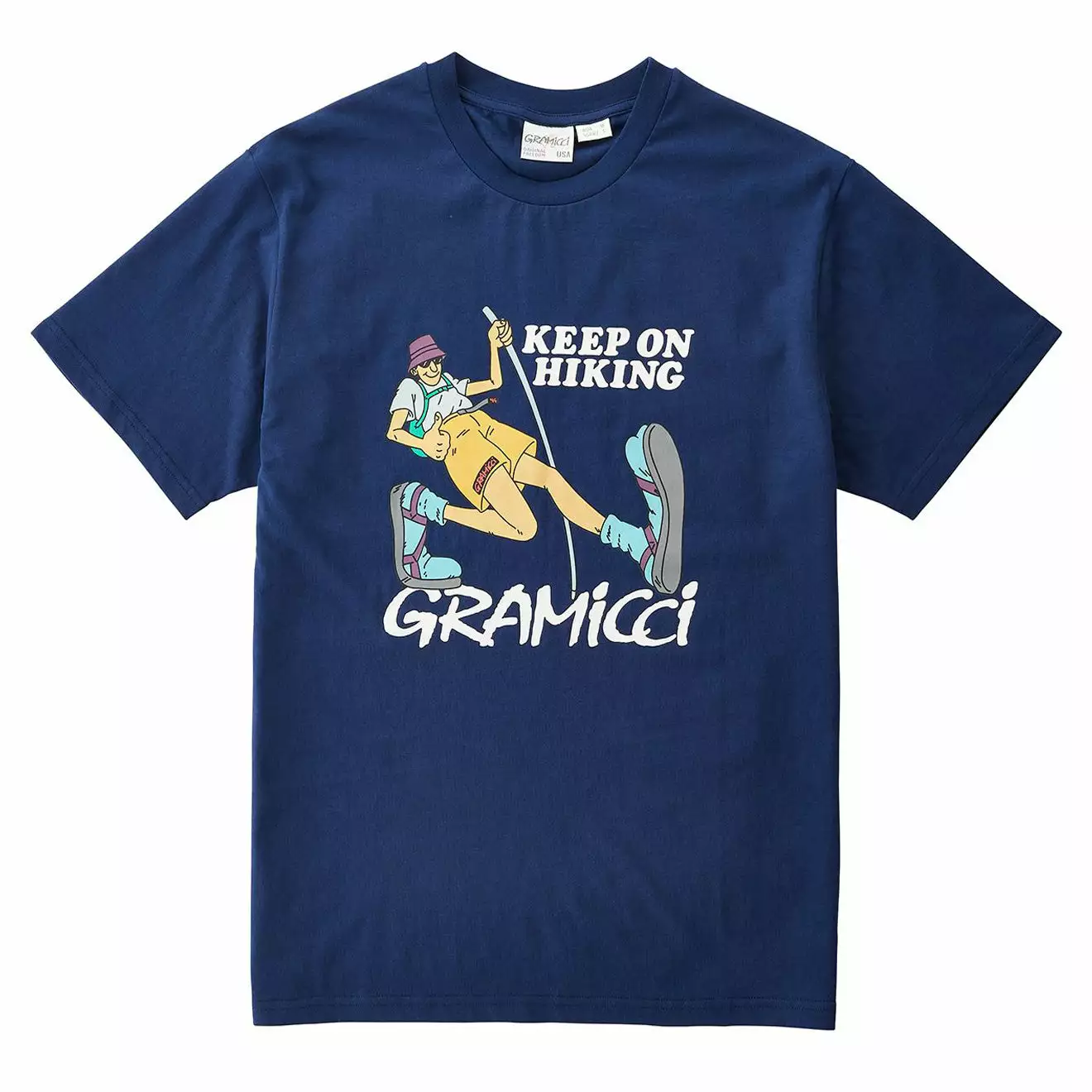 The Gramicci Keep On Hiking Tee is made from a lightweight organic cotton jersey and features a retro ‘Keep On Hiking’ print on the chest.
