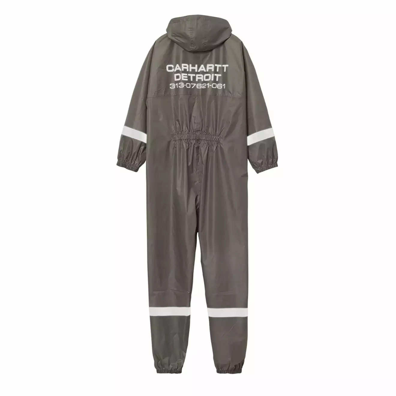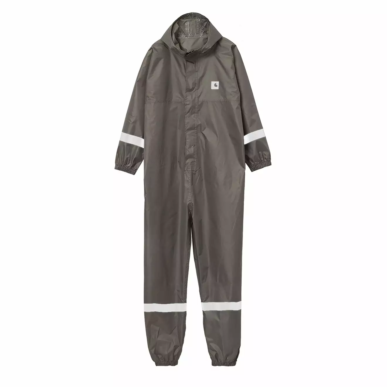 The Packable Rain Suit is constructed from a lightweight and water repellent polyester fabric with a PU coating and sealed seams. The item is unlined and features an adjustable hood, a chest opening with zip and velcro closures, and elastic detailing at the bottom hem and cuff. The garment is finished with reflective print, and can be packed down into a branded carry pouch for easy transportation.